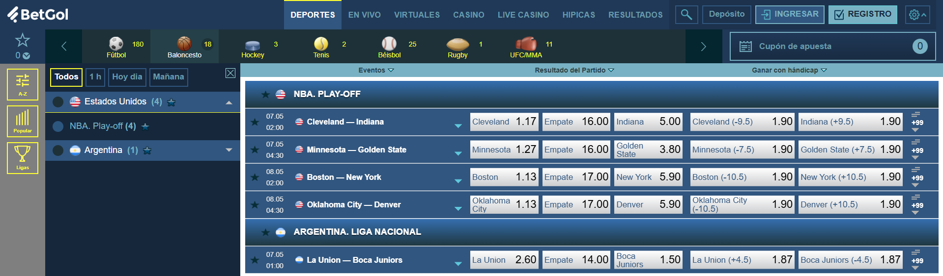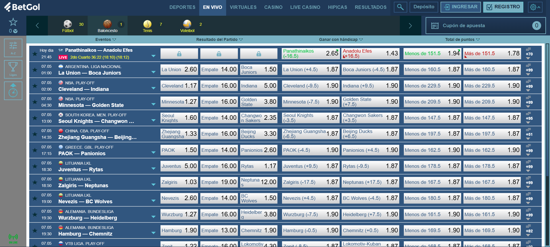 En BetGol Perú te ofrecemos una experiencia de apuestas de baloncesto inigualable. Nuestra plataforma está diseñada para los fanáticos del deporte de la canasta: desde la NBA y la Euroliga hasta la ACB y ligas emergentes en Latinoamérica. Con cuotas competitivas, mercados variados y un entorno seguro, apostar nunca fue tan emocionante.